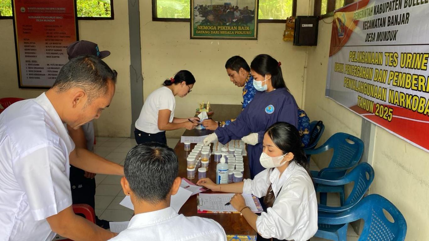 Rabu 17 Desember 2025, bertempat di Kantor Desa Munduk melaksanakan Tes Urine yang dibantu oleh petugas BNN Kab.Buleleng, kegiatan ini bertujuan untuk pencegahan dan pemberantasan penyalah gunaan Narkotika dan Obat-obatan terlarang, undangan pemeriksaan terdapat 50 orang, dimana beberapa masyarakat Desa Munduk juga ikut serta dalam pemeriksaan