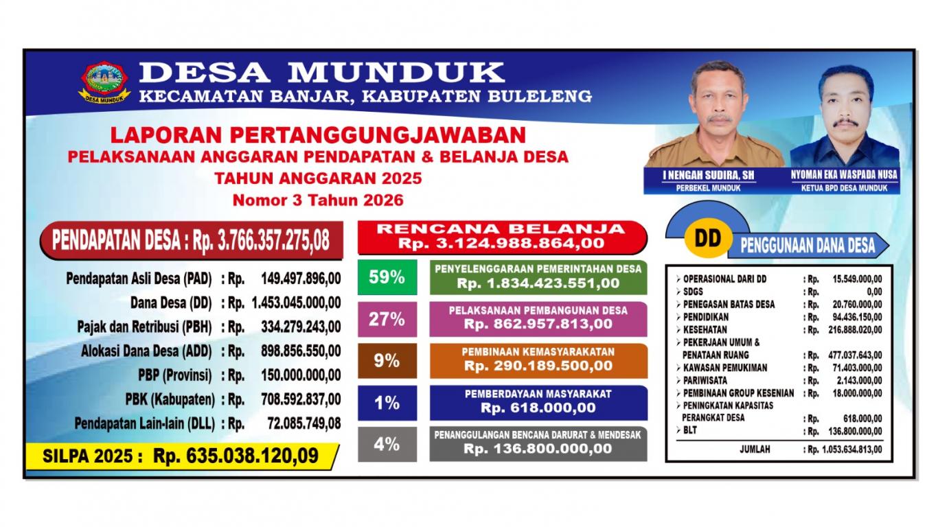 - Laporan Pertanggung Jawaban Realisasi APBDes Tahun 2026 & Anggaran Pendapatan dan Belanja Desa tahun